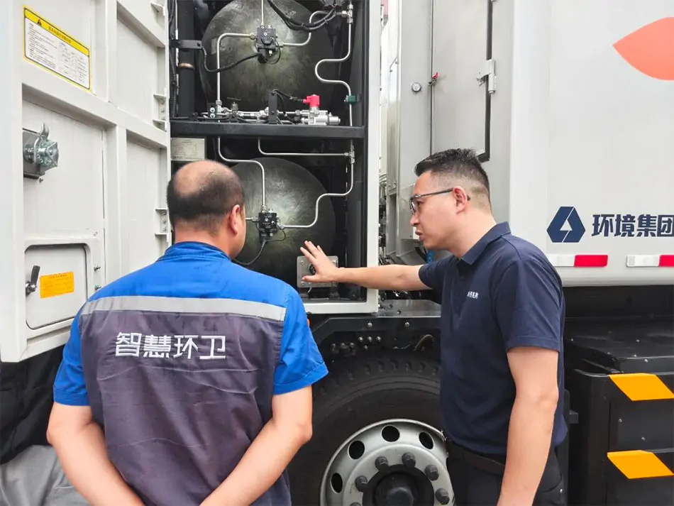为确保运营安全,联合开展的车辆操作安全培训,涵盖车厢互换流程、接污水装置维护、卸料推板使用规范等内容。云韬氢能售后服务团队将提供7×24小时响应支持,构建起“加氢保障+维修养护+操作指导”的全方位运维体系。