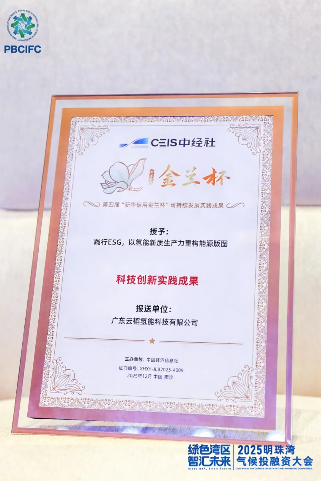 同时,凭借在绿色低碳领域的扎实实践与创新模式,云韬氢能成功摘得“新华信用金兰杯”科技创新实践成果奖项。这标志着云韬氢能环境、社会及治理(ESG)理念深度融入企业发展战略的成效,获得了国家级信用体系与专业评审的高度认可。