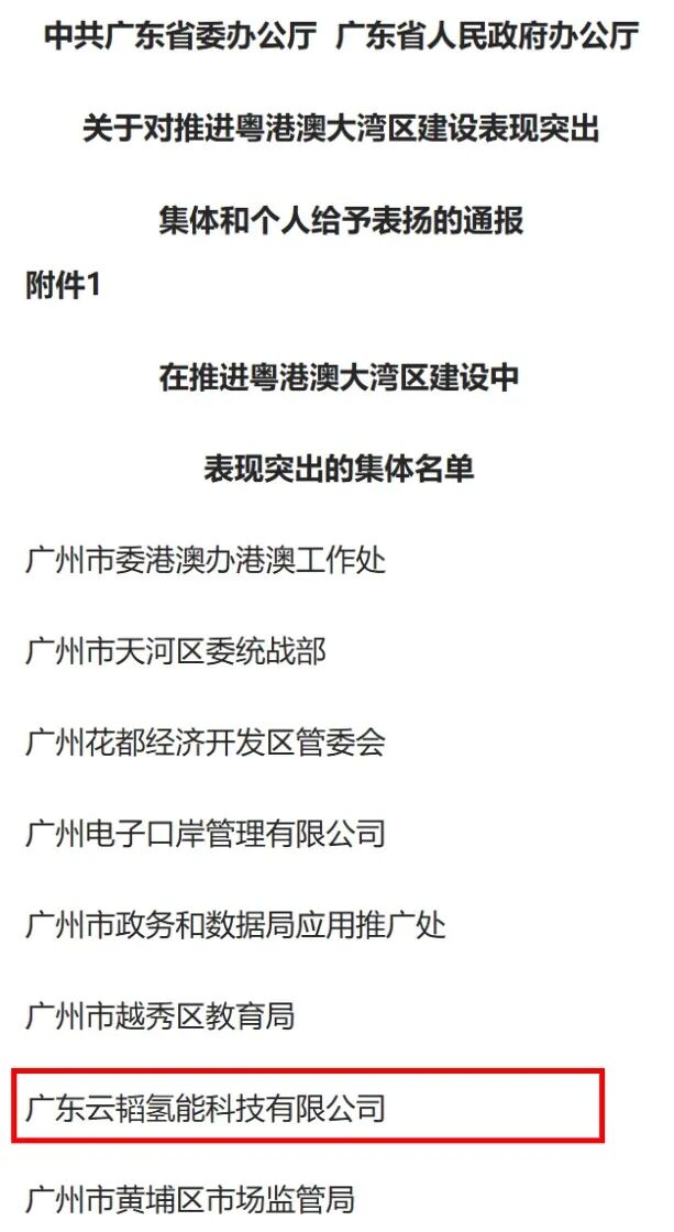 又一认可!云韬氢能荣获广东省委、省政府“推进粤港澳大湾区建设表现突出集体”
